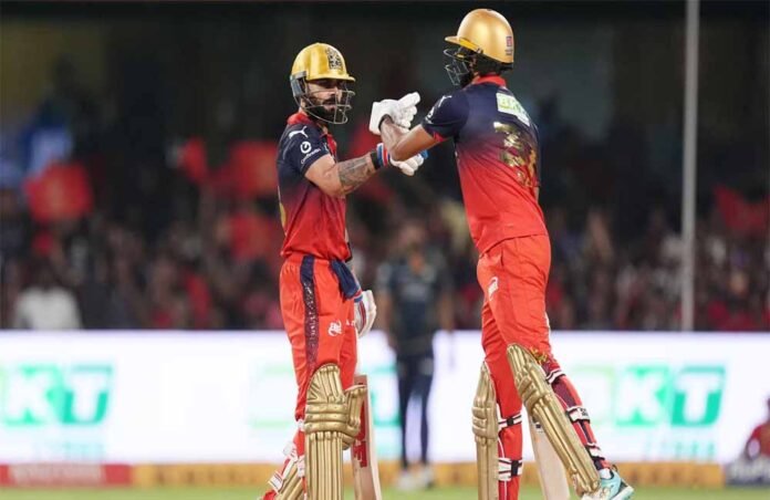 एम चिन्नास्वामी स्टेडियम में रनों की जमकर बरसात हुई, जहाँ रॉयल चैलेंजर्स बेंगलुरु ने अपनी बादशाहत कायम रखते हुए गुजरात टाइटंस को 5 विकेट से करारी शिकस्त दी। 204 रनों के विशाल लक्ष्य का पीछा करने उतरी आरसीबी के लिए उनके स्टार बल्लेबाज विराट कोहली एक बार फिर ‘चेस मास्टर’ साबित हुए। कोहली की 44 गेंदों में 81 रनों की विस्फोटक पारी और देवदत्त पडिक्कल के तूफानी अर्धशतक (55 रन) की बदौलत बेंगलुरु ने 18.5 ओवर में ही लक्ष्य हासिल कर लिया। इस जीत के साथ आरसीबी ने अंक तालिका में अपनी स्थिति और मजबूत कर ली है।